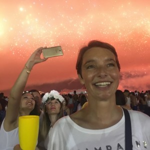 The apartment is two blocks from the beach which makes it the perfect base to celebrate New Year’s Eve on Copacabana beach. Well prepared we threw ourselves into the partying crowds: dressed in white and nothing else packed but the house key, some change and a phone. All well hidden of course, because celebrating on the beach with two million other people has its challenges. And bubbles of course! We learned from our New Year’s Eve experience in Fortaleza, nine years ago, that it was hard to find something decent to drink on the street. In Rio, that appears to be less of a challenge.We stayed near the main stage for a while to see some of the live show that was organised but the enormous crowds made it a bit less relaxed. We had already found out that there were large video screens with sound installations further down on the beach so that you could also enjoy the show from there. It’s much less crowded and you stand (or sit) between families with children who have probably been there on the beach all day and have just stayed there. Then at some point it turns midnight and the fireworks that make New Year’s Eve in Rio so famous start at sea. It only lasts for 17 minutes but is incredibly spectacular. It looks fantastic on TV, but if you are in the middle of it, it really is out of this world. And that’s when the party really starts. While a number of people go to the water to bring flower offerings to Iemanjá, the goddess of the sea, the rest of the crowd happily started to dance to the pop music of the artist we have dubbed the Brazilian version of Shakira, Anitta.