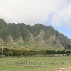Vandaag hebben we de Diamond Head krater beklommen, van waar je een prachtig uitzicht hebt over Honolulu en omgeving. En het was gelukkig prachtig weer vandaag, zodat we ook een paar foto’s van Waikiki in de zon hebben kunnen maken! Daarna zijn we naar een andere krater geweest: Hanauma Bay. Dat is een bijna ronde baai, die schijnbaar 300.000 jaar geleden ontstaan is bij een vulkaanuitbarsting. Aan een kant is de zee over de rand van de krater gespoeld zodat je nu een mooie cirkelvormige baai hebt, met de karakteristieke groen begroeide vulkanische rotsen aan de rand.