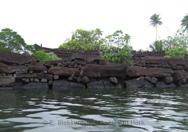 Vandaag geen duiken, maar een boottochtje naar Nan Madol, een archeologisch complex dat bestaat uit 92 kleine, artificiele eilandjes, waar we per kayak doorheen konden peddelen. Het is een hele bijzondere plek, bij uitstek geschikt voor een Indiana Jones film. Vooralsnog is het een mysterie hoe de bouwers van de eilanden erin geslaagd zijn om de enorme, zware basaltblokken ter plaatse te krijgen: ze zijn namelijk te zwaar om op een vlot of in een kano te vervoeren… Na Nan Madol bezochten we een Disney-waterval, eentje die echt heel mooi uitwaaierde in de poel eronder. Er zaten ook enorm grote aalachtige vissen in het water, maar gelukkig zag ik pas hoe groot ze waren toen ik zelf alweer het water uit was. Op weg naar de waterval hebben we nota bene een aantal manta’s gezien vanuit de boot! Ze kwamen heel vaak aan de oppervlakte, en dat deden ze met een soort koprol achterover, zodat je hun witten buiken kon zijn. Cool! Dat belooft alvast veel goeds voor onze overige duiken in dit gebied… voor we terug naar het hotel gingen hebben we nog even gesnorkeld, en toen was het alweer hoog tijd voor een borrel in het “theehuis” bij het restaurant.